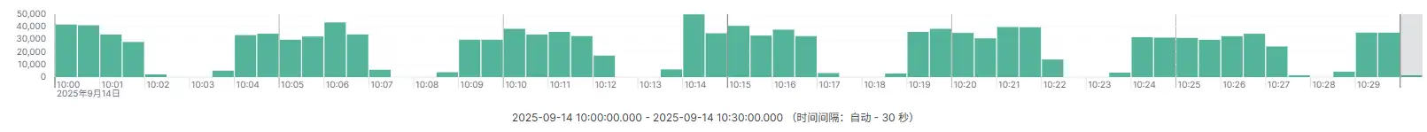 由于线上Web访问日志消息队列使用的是kafka,但是最近日志量猛然增加,通过kibana Discover查看日志,日志流显示断断续续的,很不正常,如下图所示。