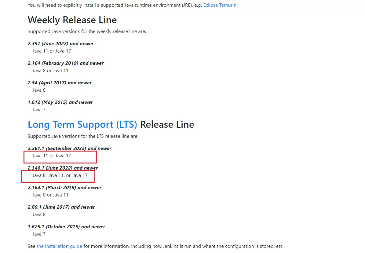 ⚠️ 注意 注意Jenkins版本支持JDK是多少,版本下最新结果跟JDK版本不匹配,就无法正常启动