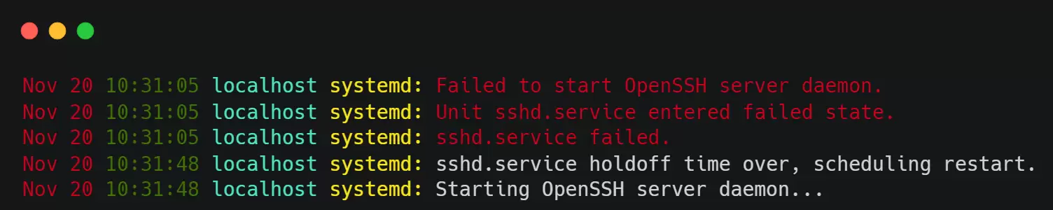 Weekend rest at home, suddenly the alarm shows that the online service Down, after two minutes of normal startup of the system, the alarm also shows recovery, then log in to the Server to see what causes, a view of the logs, there are a large number of can not start the OpenSSH daemon wrong day logs, which led to the system restarted by itself.