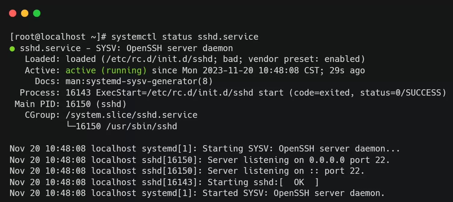 Check the status of the sshd service